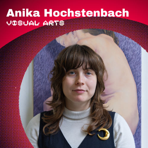 Het menselijk lichaam, de huid, dient in het werk van Anika Hochstenbach als een landschap waarin verhalen zich ontvouwen. Ons lichaam is niet slechts de drager van ons ‘zelf’; het bepaalt ook hoe we ons kunnen voelen, door de wereld bewegen en onszelf aanschouwen. Door in te zoomen op de oneindige details die op de huid te vinden zijn, wordt onze vleselijke gewaarwording fascinerend materiaal om te onderzoeken: materiaal dat zacht is, vervormt als je het buigt, van kleur kan veranderen en haartjes en sproetjes draagt. Al schilderend zoekt Anika naar plekken of momenten waar het lichaam zich thuis voelt en tot rust kan komen, zoals in de natuur of bij een ander. Het vertrekpunt van deze zoektocht is het ondervinden van ongemak en vervreemding die men bij zichzelf kan ervaren. Hierdoor lijken de beelden zich soms te begeven op de grens tussen een mythische en de werkelijke wereld.